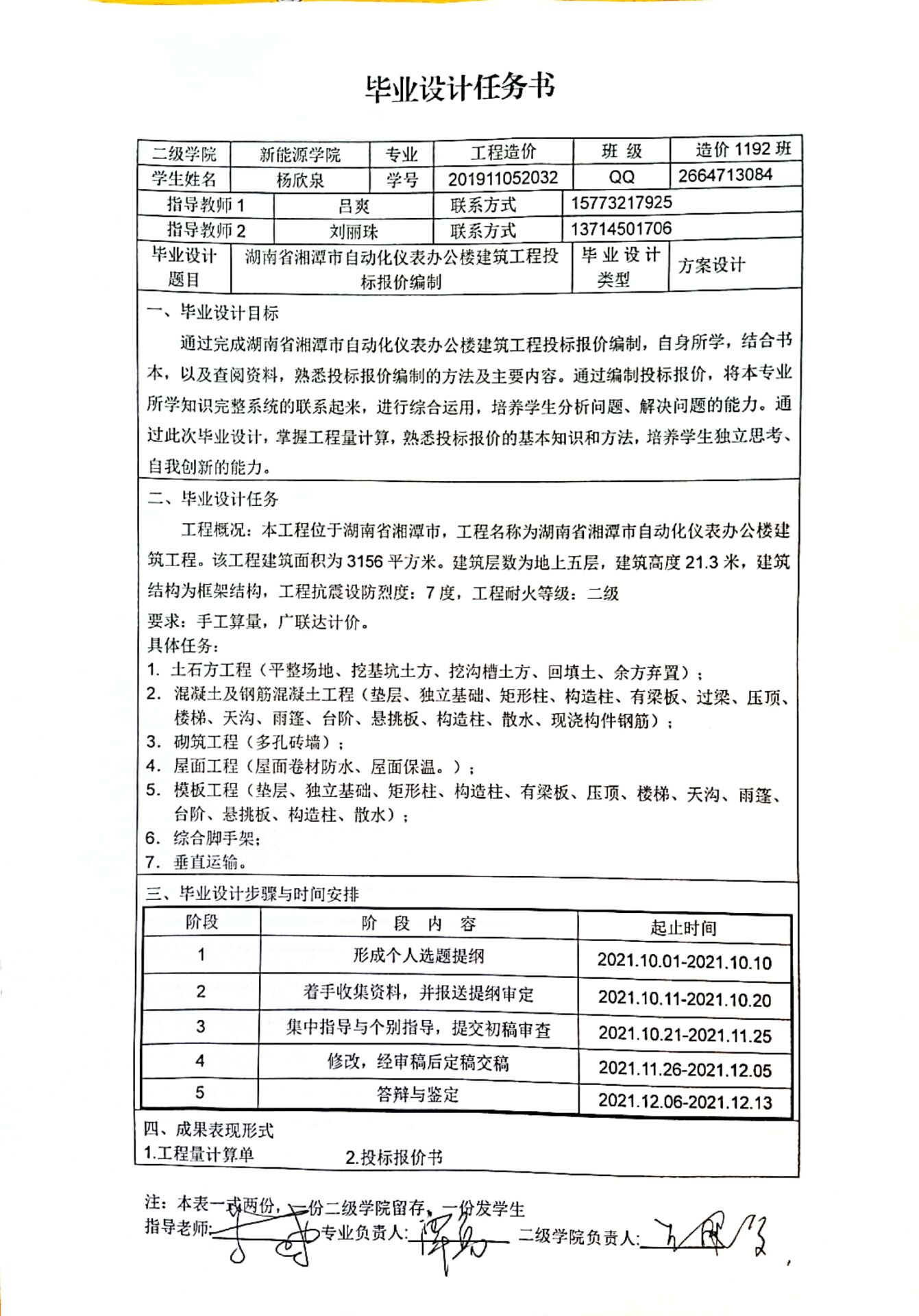 湖南省湘潭市自动化仪表办公楼建筑工程投标报价编制