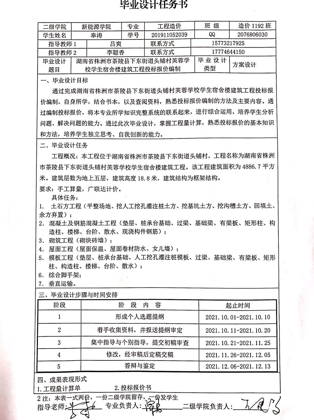 湖南省株洲市茶陵县下东街道头铺村芙蓉学校学生宿舍楼建筑工程投标报价编制