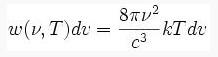 其中,w(ν,T) 为辐射的能量密度,k是波尔兹曼常数,c为真空中的光速,T是热力学温度。 可以看出,w在ν趋向于无穷大时趋向于无穷大,这于实验数据相违背。 1911年,奥地利物理学家埃伦费斯特用“紫外灾难”来形容经典理论的困境。