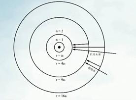 其中m为电子质量,h为普朗克常量,这一条件表明,电子绕核的轨道半径是不连续的,或者说轨道是量子化的,每一可取的轨道对应一个能级。