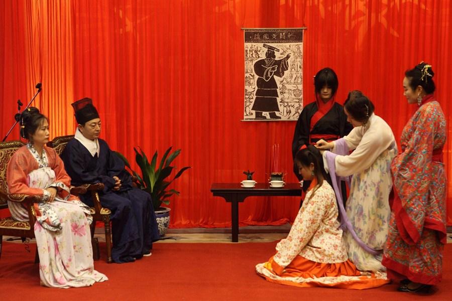 15.聆训:冠者(笄者)跪在父母面前,由父母对其进行教诲。