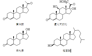 由上面四个例子看出,甾体化合物的基本碳架是由环戊并多氢菲