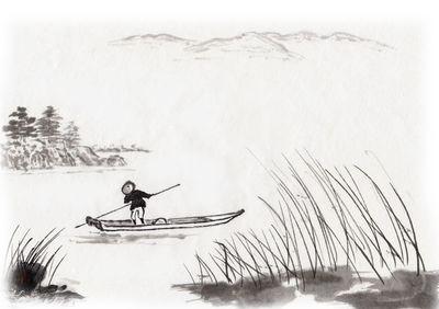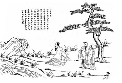 【译文】 孔子游观来到名叫缁帷的树林,坐在长有许多杏树的土坛上休息。弟子们在一旁读书,孔子在弹琴吟唱。曲子还未奏完一半,有个捕鱼的老人下船而来,胡须和眉毛全都白了,披着头发扬起衣袖,沿着河岸而上,来到一处高而平的地方便停下脚步,左手抱着膝盖,右手托起下巴听孔子弹琴吟唱。曲子终了渔父用手招唤子贡、子路,两个人一起走了过来。 渔父指着孔子说:“他是干什么的?”子路回答说:“他是鲁国的君子。”渔父问孔子的姓氏。子路回答:“姓孔”。渔父说:“孔氏钻研并精通什么学问?”子路还未作答,子贡说:“孔氏这个人,心性敬奉忠信,亲身实践仁义,修治礼乐规范,排定人伦关系,对上来说竭尽忠心于国君,对下而言施行教化于百姓,打算用这样的办法造福于天下。这就是孔氏钻研精习的事业。”渔父又问道:“孔氏是拥有国土的君主吗?”子贡说:“不是”。渔父接着问道:“是王侯的辅臣吗?”子贡说:“也不是”。渔父于是笑着背转身去,边走边说道:“孔氏讲仁真可说是仁了,不过恐怕其自身终究不能免于祸患;真是折磨心性劳累身形而危害了他自己的自然本性。唉,他离大道也实在是太远太远了!”