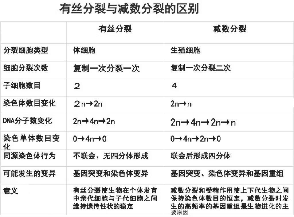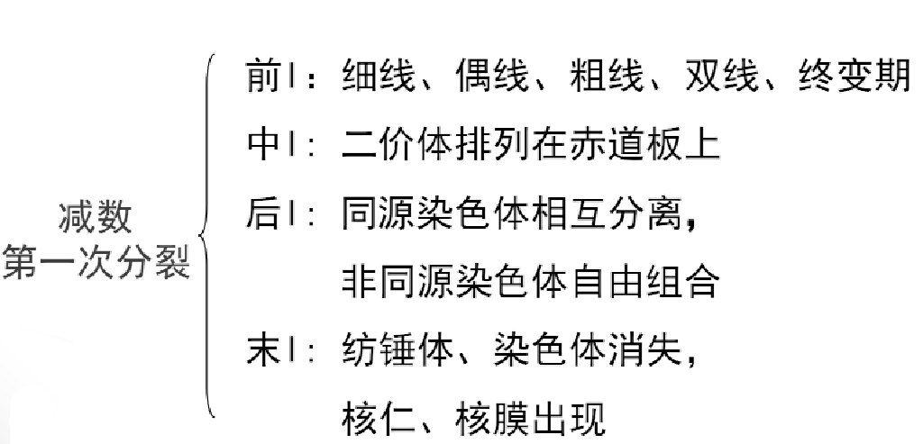 减数分裂:概念是生殖细胞成熟过程中发生的特殊有丝分裂过程,其细胞连续分裂两次,而染色体在整个分裂过程中只复制一次,结果一个母细胞产生四个子细胞,每个子细胞的染色体数为母细胞的一半。减数分裂的分期→减数分裂的前期→减数分裂Ⅰ→减数分裂的间期→减数分裂Ⅱ。减数分裂Ⅰ→前期Ⅰ、中期Ⅰ、后期Ⅰ、末期Ⅰ。减数分裂Ⅱ→前期Ⅱ、中期Ⅱ、后期Ⅱ、末期Ⅱ。前期Ⅰ是细线期、偶线期、粗线期、双线期和终线期。