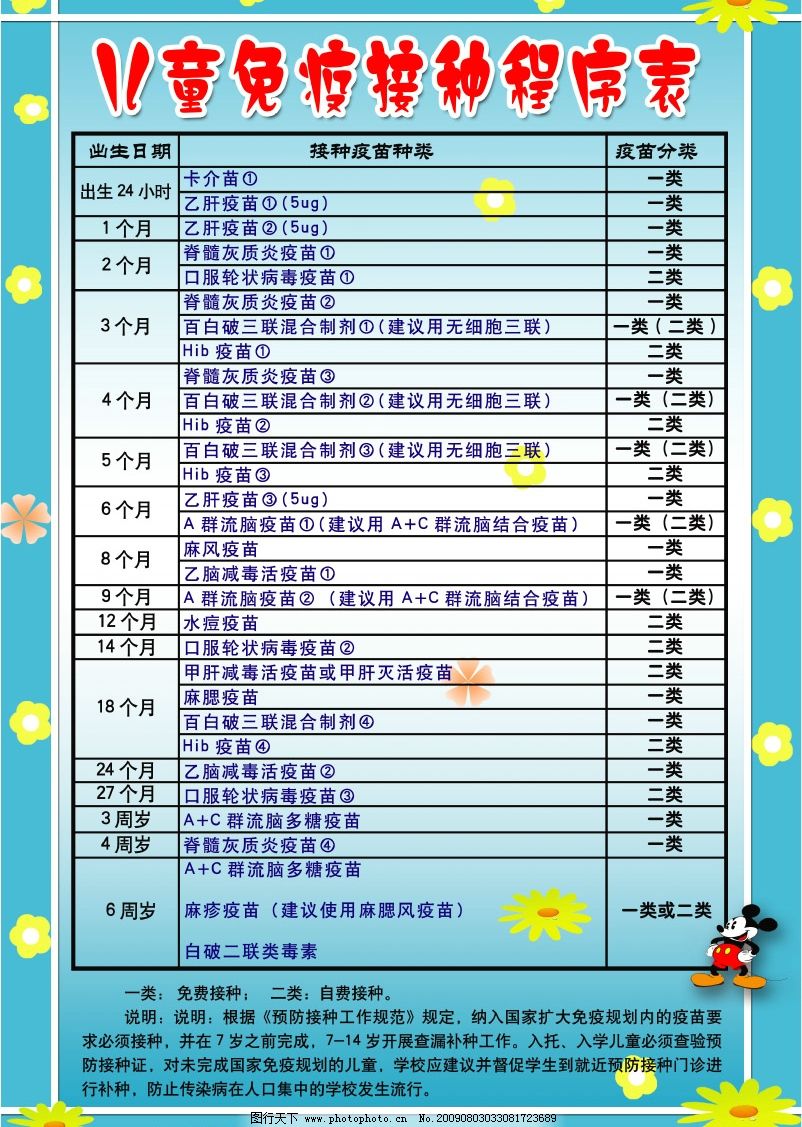 1.计划免疫程序和种类 计划免疫程序是指接种疫苗的先后顺序及要求根据2008年我国卫生部颁布的《扩大国家免疫规划实施方案》的要求,婴儿必须按计划接种乙肝疫苗、卡介苗、脊灰疫苗、百白破疫苗、麻疹疫苗、流脑疫苗、乙脑疫苗。