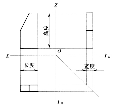侧立投影面反映高度(Z)和宽度(Y),如下图所示,即:长对正、高平齐、宽相等。