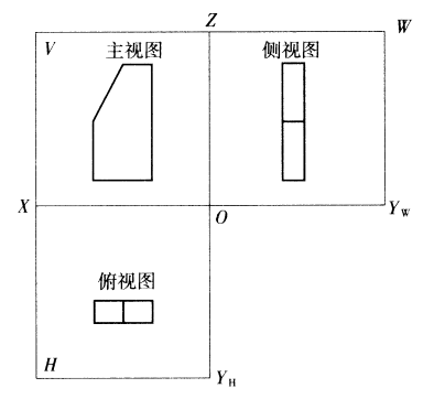 侧立投影面反映高度(Z一上下)和宽度(Y一前后),如下图所示。需要指出的是:水平投影面的下边和侧投影面的右边为前,反之为后。