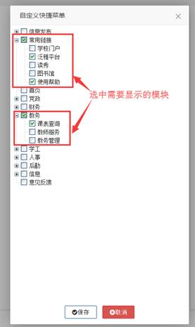 2、选择对应模块下的相关子目录,进行添加,以“泛雅平台”“使用帮助”及“课表查询”模块为例: