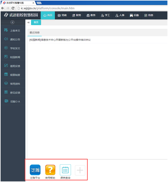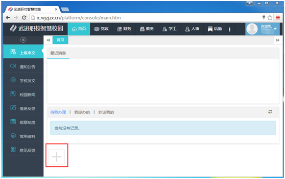 1、进入智慧校园首页,点击页面下方“+”按钮:
