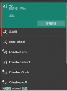 2、选择一个无线网络(包含“cgz”、“常高职”、“school”的网络均可连接使用),以“cgz”为例。