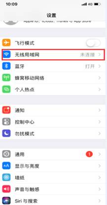 2、选择设置面板中的“无线局域网”。