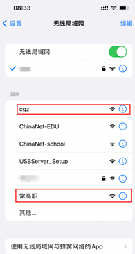 3、选择一个网络加入。(注:无线网名称中含有“cgz”、“常高职”、“school”字样的,都可以加入使用)