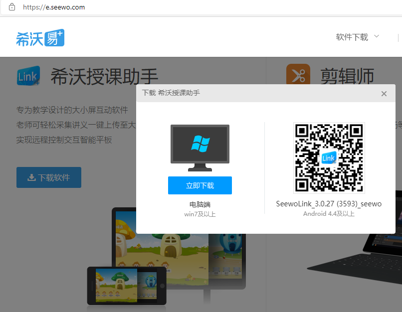扫描登录:打开移动端希沃授课助手,扫描二维码登录。