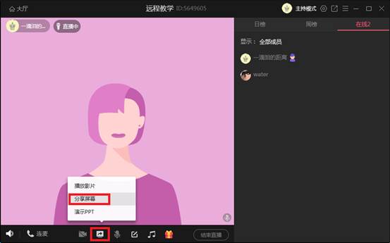 9. 分享屏幕:这里可以单击“分享窗口”或“分享屏幕”来教群成员操作电脑。