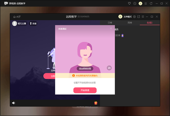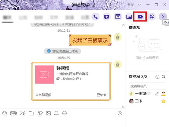 2. 进入群视频后,界面如图所示。(注意:首次进入会自动安装视频组件,稍等即可)