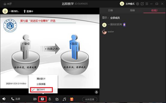 8. 演示PPT:单击“分享”选项卡,选择“演示PPT”来演示。