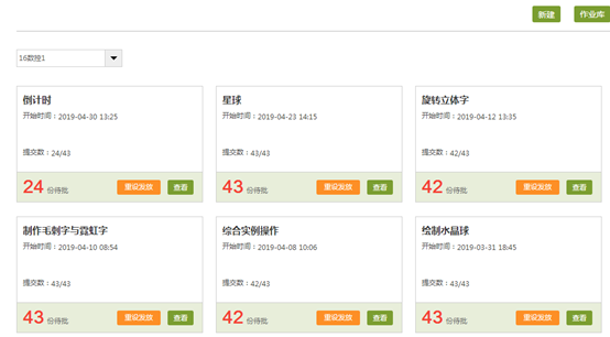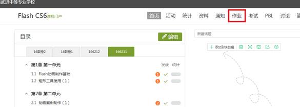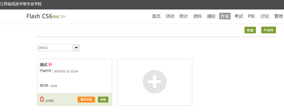 1、新建:进入课程“首页”,从“作业”导航栏进入作业列表。点击“新建”按钮,进入作业新建界面。