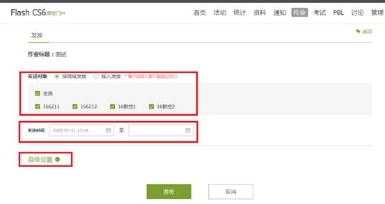 点击对应作业右侧“发布”按钮,进入作业发布界面。