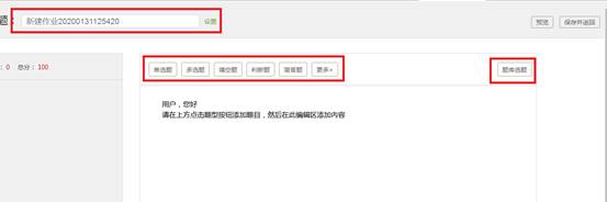 在该界面中,可以定义作业名称,通过两种方法创建作业:可以选择相应题型并输入相应作业,也可以选择“题库选择”,直接在题库中选择已保存的题目。