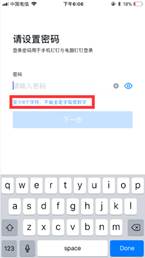 6.验证码验证完成之后,进行设置密码(注:密码不能都为数字或都为字母),输入密码之后,点击下一步,如下图所示: