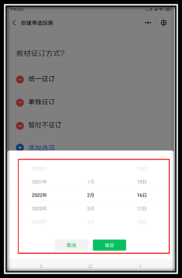 注:投票标题不可空,默认为两个选项,若超过两个时,可点击“添加选项”进行添加。