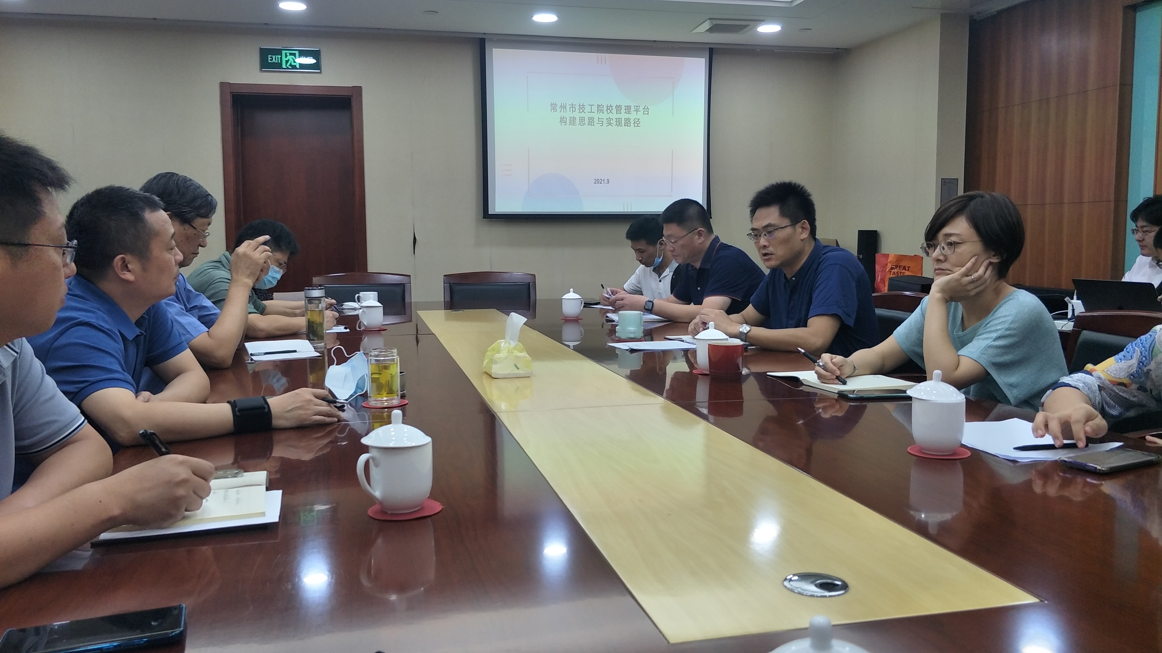 2021年9月9日上午9:30,张伟贤校长在信息技术处王涛主任和教学科研处李天翼主任的陪同下,共同参加了在常州市人社局举行的“市技工院校信息化管理研讨会”。