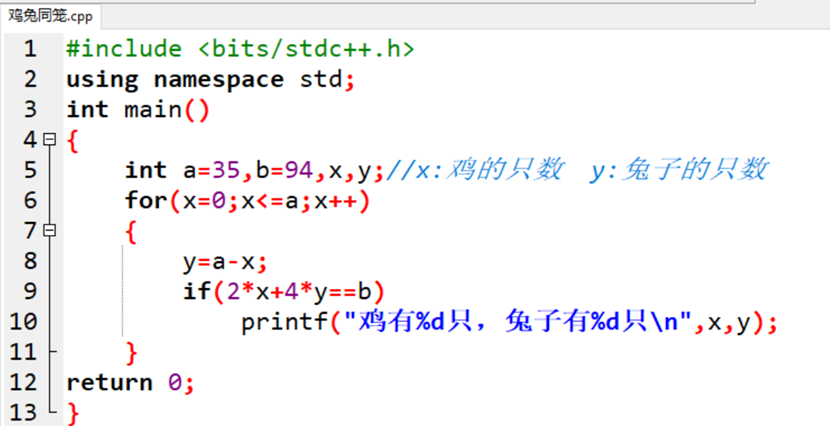 师:今有鸡兔同笼,上有三十五头,下有九十四足只,问鸡兔各有几只?用什么