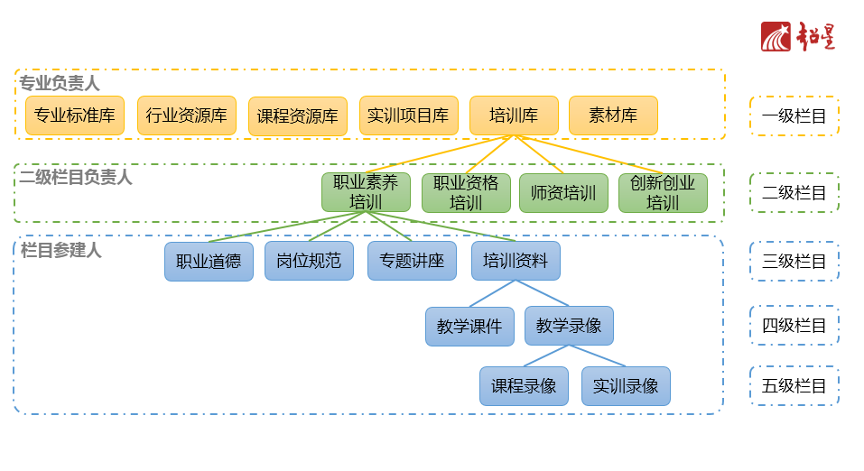 为保证资源建设的流程化管理,资源库栏目建设采用层级指派的方式,实现建设过程相互督促与协调。