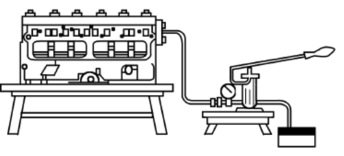 气缸体裂纹的检查一般采用水压试验法,如图4-3-2所示。试验时,应用专用的盖板封住气缸体水道口,用水压机将水压入缸体水道中,要求在0.3~0.4MPa的压力下,保持约5min,应没有任何渗漏现象。