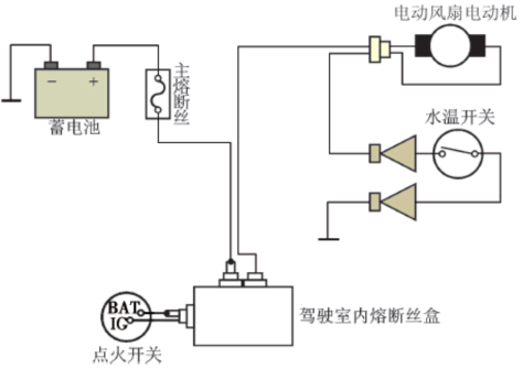 电动风扇的优点为发动机温度低时,风扇不转动,缩短发动机预热的时间,运转噪声小,且不必消耗发动机动力。