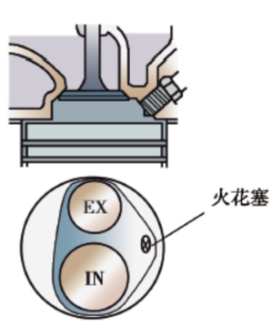 采用盆形燃烧室,气门配置结构简单,混合气压缩时涡流强;但由于进、排气门锥面积大,进、排气孔弯曲弧度大,故容积效率较低。