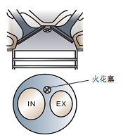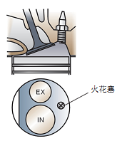 进、排气门成一条直线排列,垂直安装在气缸盖上,如图4-4-4所示。图中IN表示进气门,EX表示排气门。