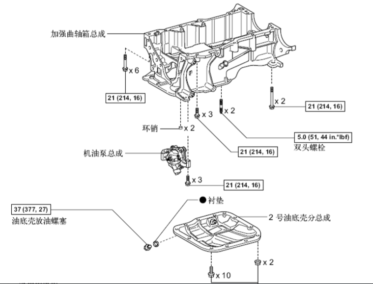 图4-5-2 拆卸油底壳及加强曲轴箱总成