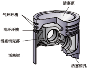 活塞是由活塞顶部、活塞头部和活塞裙部三部分组成,如图5-2-2 所示。