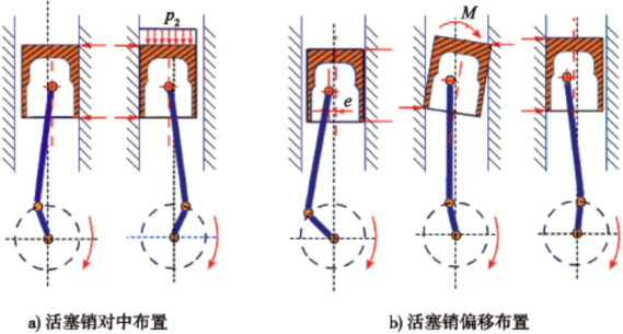 图5-2-6 活塞销偏置时的工作情况