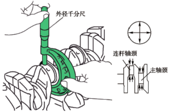 图5-10-3 曲轴轴颈磨损检查测量部位