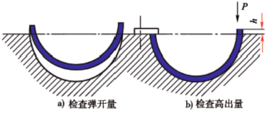 要求轴承在自由状态下的曲率半径大于座孔的曲率半径,如图5-10-4 a)所示,保证轴承压入座孔后,可借轴承自身的弹力作用与轴承座贴合紧密。