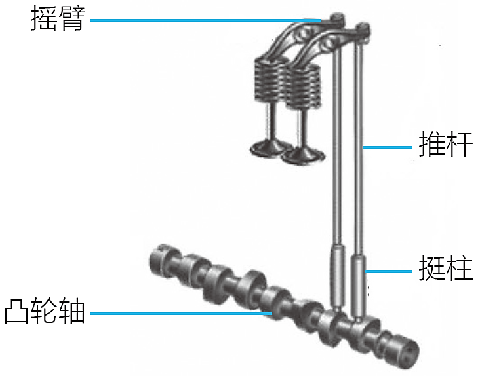 推杆处于挺柱和摇臂之间,其作用是将挺柱运动传来的作用力传给摇臂。