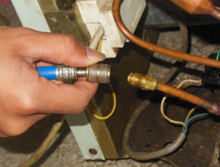 图10-29 连接软管的另一端与三通检修表阀相连