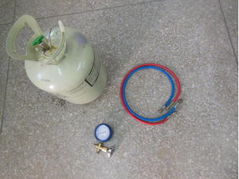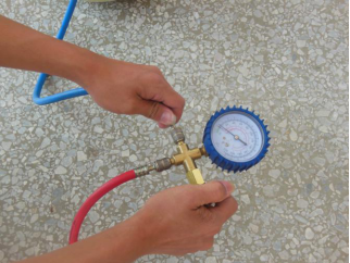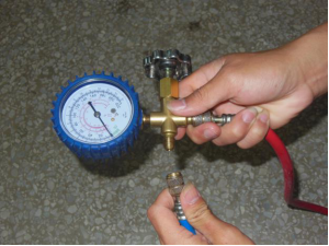 ⑦向制冷系统内充入制冷剂时会产生气流声,气流声停止后就证明系统内的制冷剂充注量已达到了要求。此时压力表的指示为0.5MPa。