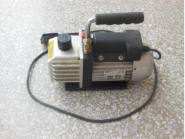 先将真空泵接管处接到焊在压缩机工艺管上的修理阀进行抽真空,抽至压力为-0.1 MPa后关闭修理阀后再关真空泵电源即可。如图10-17所示,为真空泵的实物外形图,从图中可以看出,真空泵上有吸气口的排气口。
