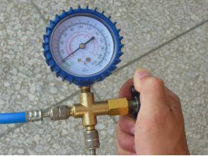 (5)保压检漏法:所谓测压检测法就是在系统内充入适量的制冷剂或氮气,当加到一定压力时,根据压力表的变化来判断制冷系统是否泄露。
