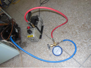 打开电冰箱的管路系统进行试压、检漏后,必须对制冷系统做抽真空处理,用真空泵抽出制冷系统内的空气和水分(这些空气和水分是在打开管路进行维修时进入的)。