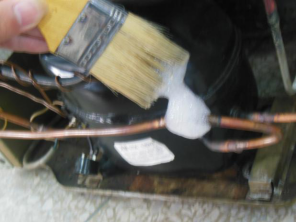 (1)油迹检漏:观看冰箱各焊接口是否有油迹。