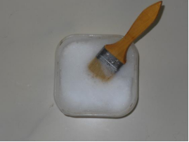 ①将少许洗洁精水放入容器中并加入少量冷水混合,用刷子将其搅拌成泡沫状,如图10-8所示。