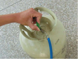 图10-15 打开制冷剂钢瓶的阀门