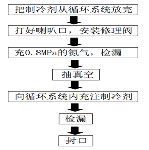 (1)粗充:停机充入约0.5MPa制冷剂。
