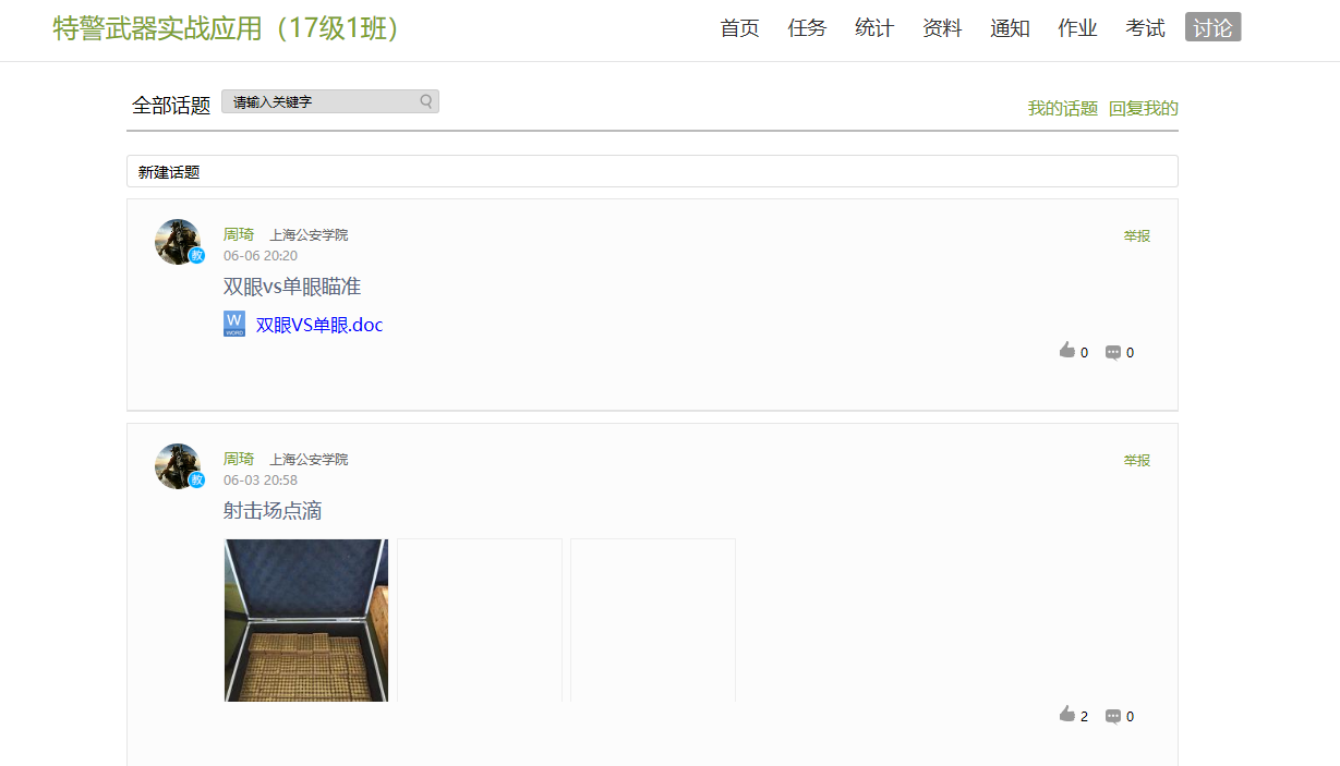 在课程页面中点击讨论,学生可以在这里新建问题与老师或同学进行话题互动。