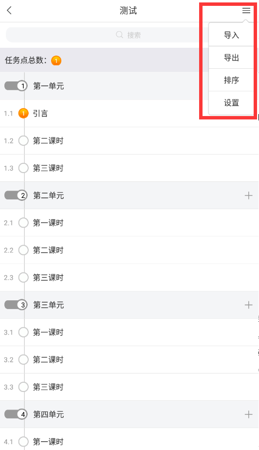 点击课程,进入课程界面。点击课程章节,右上角导入,四种类型导入资源。
