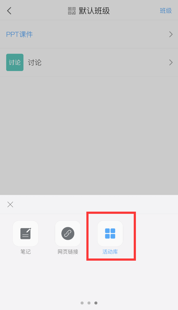 点击下方“+”号按钮,即可发布课堂活动、调取资源上屏。课堂活动可提前编辑备课、支持复用,发布过的活动均自动保存于“活动库”中,可进入活动库重新发放。